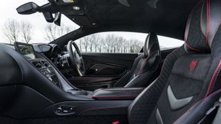 Inside, the DBS boasts pure black leather and alcantra seats with red stitching and bespoke TAG Heuer quilting, each displaying the TAG Heuer logo. Carbon fibre and dark chrome has been used throughout to finish off the cockpit.